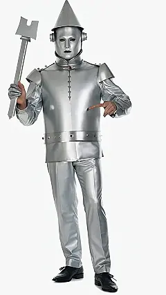 This Tin Man costume is definitely not your average Halloween getup! With his shiny, silver suit, pointy hat, and oil-slicked smile, this guy looks ready to take on the Yellow Brick Road. Just imagine the fun you’d have walking around in this outfit, especially if you carry a bucket with you, like the real Tin Man does! It’s just like in the Wizard of Oz, except this time, you get to be the one who’s in charge of making sure everyone is happy. After all, a Tin Man’s gotta stay positive, right?