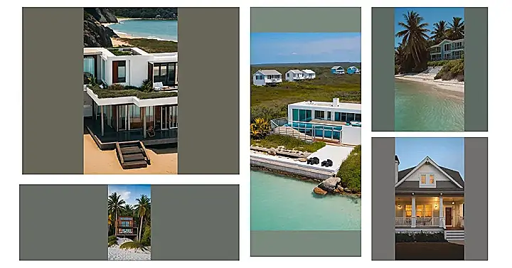 The house is surrounded by palm trees, which look like they’re waving hello to you. And the beach is so white and sandy that it almost looks like powdered sugar. It’s the kind of place where you could just hang out all day, building sandcastles, playing beach volleyball, or maybe even taking a dip in the ocean. If you’re ever lucky enough to find yourself here, be sure to take lots of pictures!