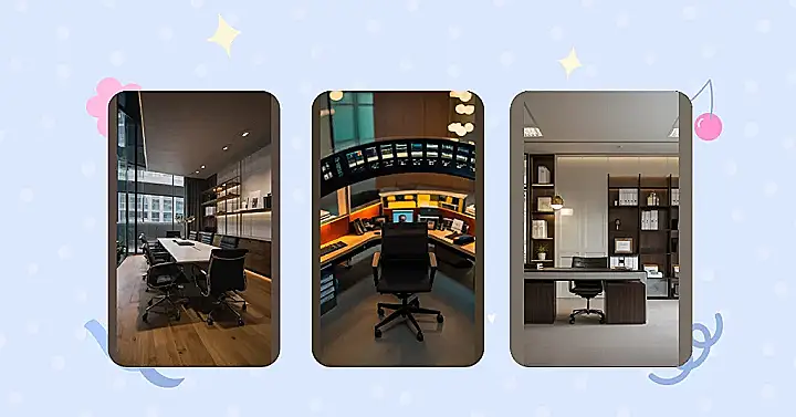 The image shows a modern office space with a sleek desk, comfy chairs, and a minimalist vibe. It’s like stepping into a magazine for grown-ups! The soft lighting and neutral colors create a calming atmosphere, perfect for focusing on your tasks without getting overwhelmed. It’s a far cry from the cluttered desks and flickering fluorescent lights of your typical high school classroom!
