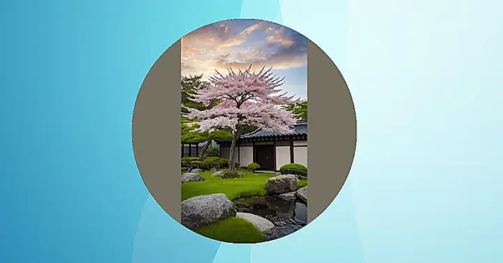 Imagine strolling through a Japanese garden, the air filled with the sweet scent of cherry blossoms. This picture totally captures that feeling! A magnificent pink cherry tree, practically bursting with flowers, is the star of the show, looking like it’s having the best sunset viewing party ever. The perfectly manicured lawn and carefully placed rocks are like the tree’s awesome entourage, all creating a super peaceful vibe that makes you want to grab a cup of tea and just chill. It’s so pretty, it almost looks fake—like someone digitally painted the most amazing garden scene ever!