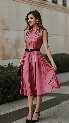 That dress is so cute, it practically screams “ready for anything!” Whether you’re grabbing a fancy coffee with your bestie or trying to impress that cute guy from math class, that pink number with the black belt is totally stealing the show. And those heels? You go, girl!