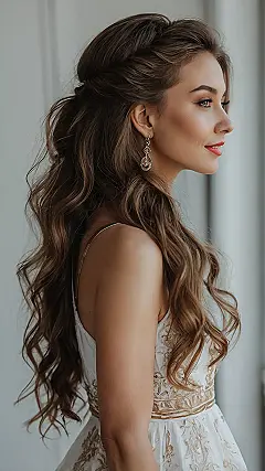 This kind of half-up style, like the one in the picture, is pretty genius for a gig. You get to keep those epic waves flowing for maximum rockstar effect, but the top part is pulled back and secure, maybe with a cute braid or twist that says, “I’m here to party, but my hair is NOT the main event getting tangled!” Plus, adding a bit of sparkle, like that cool clip, means your hair catches the stage lights and you’ll totally shine, literally. It’s like the best of both worlds: looking glam while being practical enough to actually *enjoy* the music without constantly adjusting your mane.