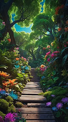 This picture looks like the kind of place where the stairs are made of giant moss cushions, and stepping on them might make a tiny, happy squeak sound, like a friendly frog saying hello! Seriously, look at all those crazy bright flowers popping out – they’re basically throwing a party. If you slap this on your phone or computer, you’re basically giving your screen a first-class ticket to a magical forest adventure, making it one of the coolest ‘cute wallpaper backgrounds’ around. It’s almost too pretty; you might forget what app you were trying to open!