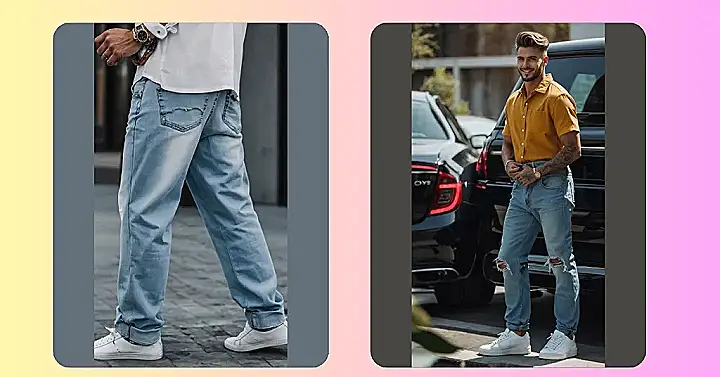 Forget perfect, these jeans are all about looking cool without trying too hard. See the guy in the pic? His jeans have just the right amount of rips, like they’ve been on some adventures (even if the biggest adventure was just finding a good spot for a selfie). It’s like they say, “Yeah, I know I look good, and I’m not even bothered by a few holes.” That’s the secret sauce of men’s streetwear jeans – looking awesome while being totally relaxed.