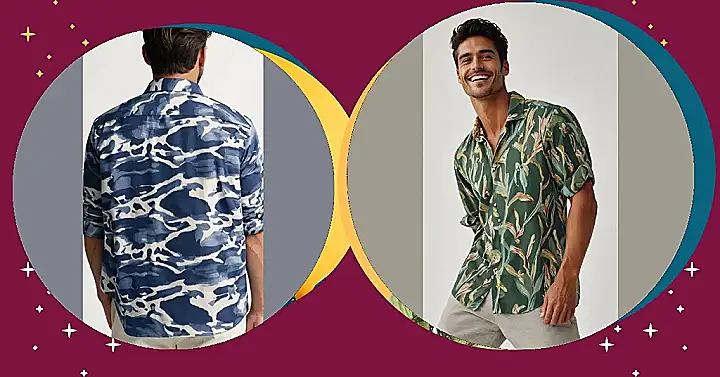 This “mens Bold Print Shirt outfit” isn’t just about the shirt, though! It’s about the whole package. Picture yourself pairing it with some dark jeans, maybe some cool sneakers, and BAM! You’ve got a look that’s effortlessly stylish. This isn’t your grandpa’s Hawaiian shirt; it’s a modern masterpiece. It’s the kind of outfit that screams, “I’m comfortable in my own skin and my fashion choices reflect that!” Plus, you can totally impress your crush without even trying too hard.