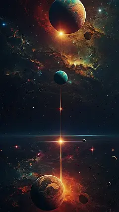 Want a wallpaper that’s out of this world? This image has planets arranged like some cosmic totem pole, and a light beam trying to connect them all. Maybe they are playing some sort of cosmic game of catch. Hopefully, they aren’t planning an intergalactic bowling tournament using those smaller asteroids. It would be pretty embarrassing to have your phone background be the reason the universe ends, just saying.