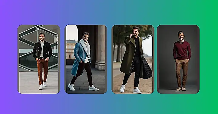 Forget the ugly Christmas sweater! This guy’s rocking a seriously stylish holiday look that’s way more sophisticated than your grandpa’s reindeer pajamas. He’s got the cool, dark turtleneck sweater—perfect for layering—paired with effortlessly chic khaki pants. It’s the kind of outfit that screams “I’m festive, but I also have a life.” Plus, those clean white sneakers? Game changer. He’s ready for Christmas dinner, a family gathering, or even a cozy night in – all while looking ridiculously good.