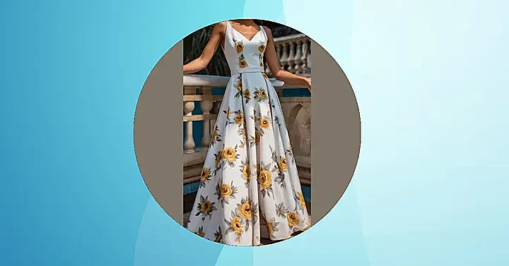 Whether you’re going to prom, a fancy dinner, or just feel like rocking some serious style while grabbing coffee, this frock’s got you covered. It’s long enough to be fancy, but the floral pattern keeps it fun and fresh. Plus, imagine the twirling possibilities! You could practically float through the hallways like you’re in your own movie. Just try not to trip!