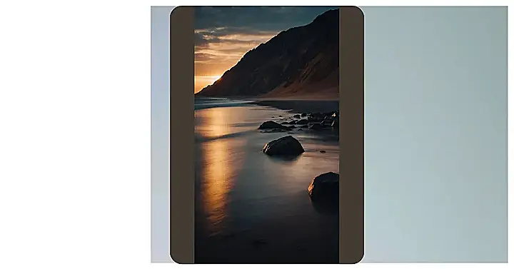 This picture is like a super chill vacation, but without all the annoying tourists and loud music. It’s just you, the ocean, a mountain, and some rocks. The sunset is painting the water with gold, and the waves are so calm they look like they’re just taking a nap. It’s the kind of scenery that makes you want to sit down, close your eyes, and breathe in the salty air. It’s like a whole mood, but in a picture!