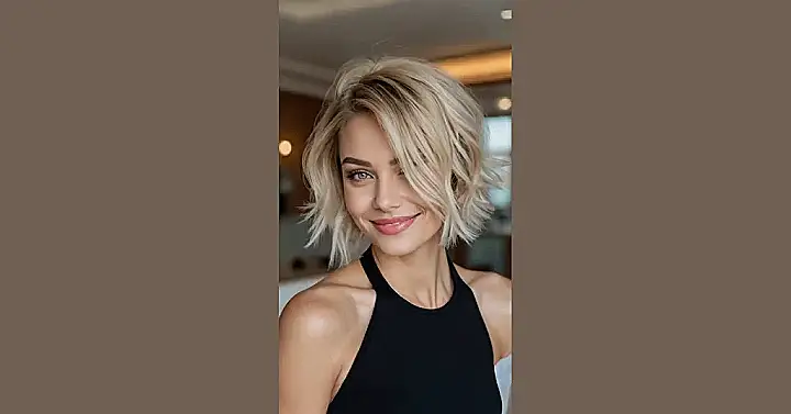 This picture is all about that gorgeous blonde hair color, right? But it’s not just any blonde; it’s a seriously chic, short, and wavy style that’s totally rocking. Imagine the confidence! It’s like, “Hey world, I woke up like this (okay, maybe with a little help from my stylist), and I’m ready to conquer the day—or at least grab a delicious smoothie.” This blonde is giving off major “I’m effortlessly cool, even if my hair took three hours to style” vibes.
