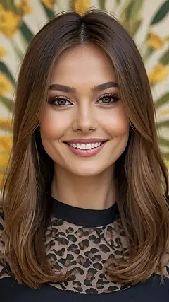 This hairstyle is like a delicious layered cake—lots of yummy textures and colours that make you want to take a bite! Imagine having hair so fab, it could be the star of its own hair commercial. Seriously, those long layers and soft bangs are totally rocking that “effortlessly chic” vibe. It’s perfect for anyone who wants to look amazing without spending hours in front of the mirror.