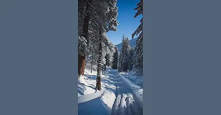 This picture looks like a scene straight out of a fairytale! The trees are all covered in snow, making them look like giant white marshmallows. The snow-covered path looks so inviting, like it’s calling out to you for an adventure. Just imagine walking along that path, crunching through the fresh powder, with the sun on your face and the crisp winter air filling your lungs. It’s the perfect picture for a winter day, reminding you of all the beauty and fun that winter can bring.