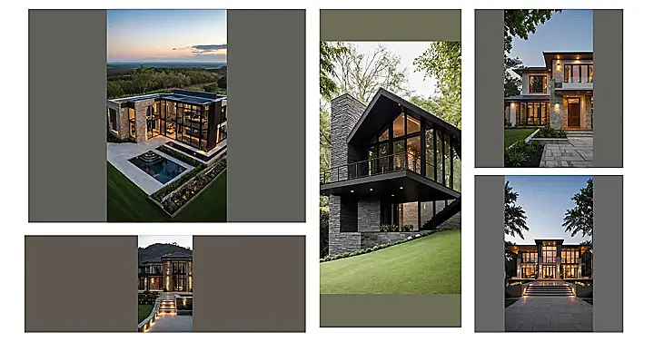 Building a house isn’t just stacking bricks; it’s like being a superhero tailor but for buildings! House architecture design is all about giving a building its personality. Look at this one – it’s got this cool stone archway like a secret entrance, but then BAM, sleek black metal and huge windows upstairs. It’s like mixing a knight’s castle with a spaceship, deciding how all the different pieces fit together so it looks awesome and, you know, doesn’t leak when it rains.