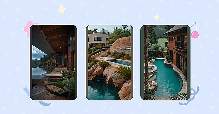 But the best part? The pool! It’s so clear and blue, it looks like it could be a real swimming hole. You can even see the reflection of the house in the water, which makes the whole thing look even more magical. It’s the perfect place to hang out on a hot day, or even just to relax and enjoy the peace and quiet. I bet the owner throws some epic pool parties!