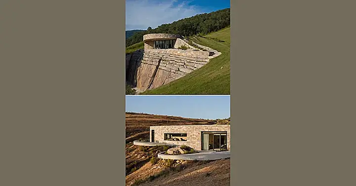 These houses aren’t just built *on* the land; they’re practically *part* of it! Think of them like cozy underground forts or secret hideouts built right into a hillside, using the earth like a giant comfy blanket. Look at the images – they’re snuggled into the slope, using stone and blending in so well, you might wonder if a bunch of really stylish hobbits finally got tired of round doors and upgraded. These are what folks call earth sheltered homes, and they’re basically the coolest way to play hide-and-seek with architecture.
