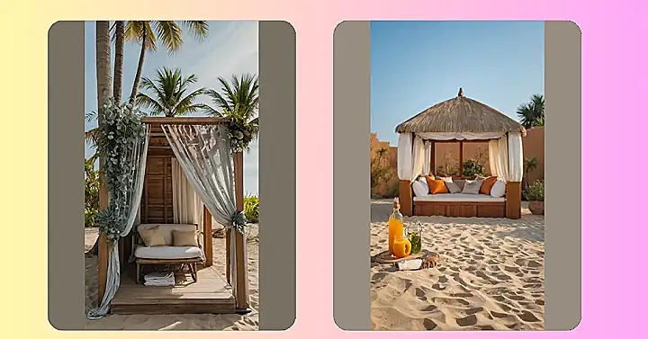 Forget fancy hotels, this simple cabana design proves that less is more. It’s a total win-win: super easy to build (or at least, imagine building!), super stylish, and super relaxing. Plus, those little boxes look like they might contain delicious snacks – the perfect accessory for your seaside retreat. You could even add some fairy lights for extra magic! It’s simple, breezy and totally Instagrammable.