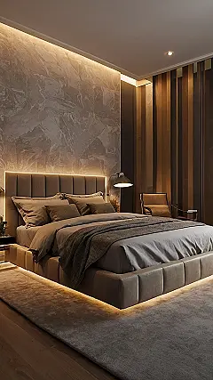 Whoa, check out this bedroom! It’s like someone took a regular bed and gave it a serious upgrade. The bed decorating in this picture isn’t just about making things look pretty; it’s about creating a whole vibe. With those glowy lights under the bed and behind the headboard, it feels like you’re about to sleep in a spaceship…or at least a really fancy hotel room that doesn’t make you do your own laundry.