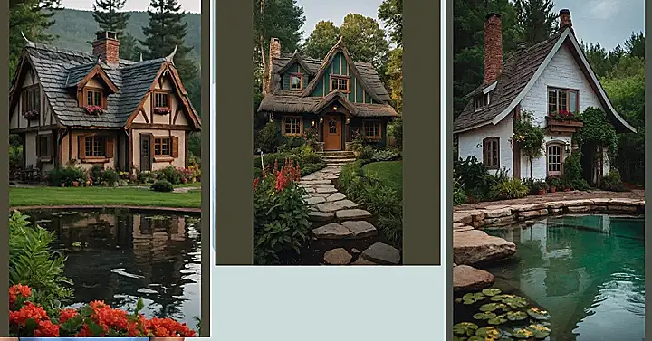 But maybe you’re not the only one who lives there. What if there’s a friendly little gnome hiding in the flowers, watching you from behind a giant mushroom? Or a mischievous pixie fluttering around the stream, giggling as she plays hide-and-seek in the fog? This cottage might be just a picture, but it definitely makes you wish you could step right into the scene and explore this magical world.