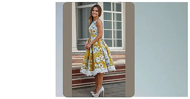 This frock screams Parisian chic, even if it’s missing the Eiffel Tower in the background! You could totally rock this outfit to a fancy brunch or even a school dance. Just imagine twirling around the dance floor looking like a total sunshine goddess! It’s like a ray of light just escaped from Paris and landed in your closet.