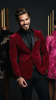This Christmas, ditch the reindeer sweater and unleash your inner James Bond! That dashing red velvet jacket is the perfect way to make a statement at your holiday party. Forget the same old boring outfit; this combo screams sophistication and festive fun. Pair it with some sharp black pants, a crisp shirt, and maybe even a fun pocket square, and you’ll be the best-dressed guy at the party – no mistletoe required!