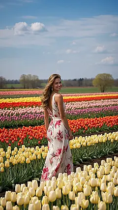 Maybe the goal was to blend in, becoming the most stylish tulip in the field, or perhaps to stand out so much that even the bees paused their buzzing to admire the fashion choice. Either way, rocking a stunning outfit surrounded by endless rows of colorful tulips makes for one epic photo op. Just try not to get dirt on that lovely white skirt – the fashion police (aka the farmers) might not approve of turning a runway into a mud slide!