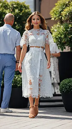 This outfit screams “I’m classy but also down to grab pizza after!” I mean, check out that skirt – it’s perfect for twirling, and who doesn’t love a good twirl? Plus, the whole white ensemble is super cute and can be dressed up or down. Picture it with sneakers for a casual vibe or those heels for when you want to feel extra fancy.