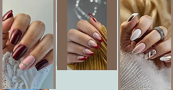 These nails are so simple and classy, they probably have a tiny butler opening doors for them wherever they go. Look at those deep red ones! They’re like the sophisticated older sibling of basic nail polish. And then the beige ones with the little red tip? That’s basically a tiny, stylish hat for your nail, ready for any occasion. You could wear these to school, to hang out, or even accidentally bump into someone important and look instantly put-together without even trying.