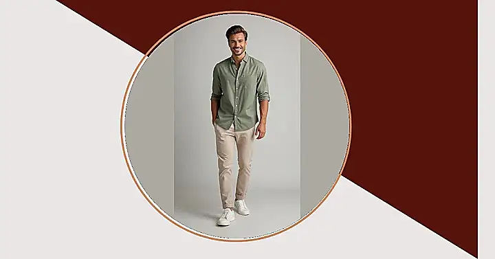 That dude in the picture? He’s rocking the ultimate casual look – a seriously cool sage green shirt with some seriously stylish beige pants. It’s like he stepped straight out of a magazine, but trust me, this look is easier to pull off than it looks. Forget the fancy stuff; this is all about comfort and looking effortlessly awesome. It’s perfect for a chill day with friends, a casual date, or even just impressing your teachers (maybe not *too* much, though).