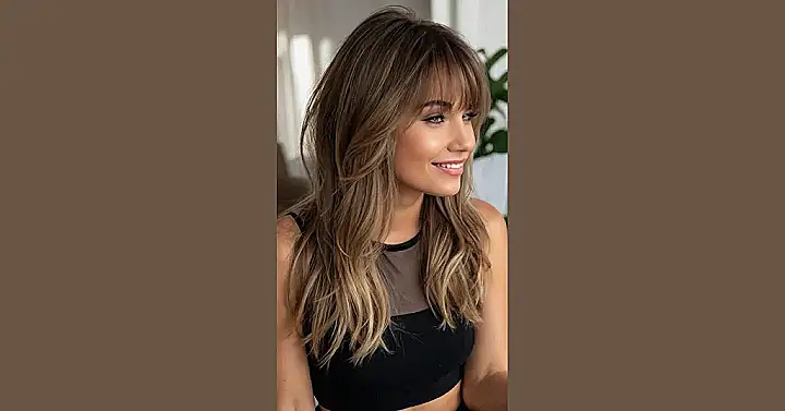 This hairstyle is like a delicious layered cake—lots of yummy textures and colours that make you want to take a bite! Imagine having hair so fab, it could be the star of its own hair commercial. Seriously, those long layers and soft bangs are totally rocking that “effortlessly chic” vibe. It’s perfect for anyone who wants to look amazing without spending hours in front of the mirror.