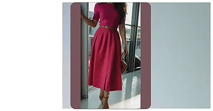 This outfit is like a classic movie star, all glam and polished but still feeling comfortable and easy to wear. The red skirt is the star of the show, making a bold statement without being too over the top. It’s like a superhero cape, but for your legs! The simple black top is the perfect sidekick, letting the skirt shine without stealing the spotlight. And those heels? They’re the cherry on top, adding a touch of sassy confidence to the whole look. You can totally picture yourself rocking this outfit at a fancy dinner, a school dance, or even just hanging out with your friends – it’s versatile enough for any occasion!