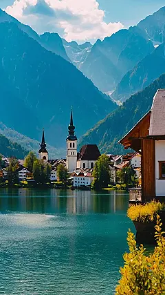 Dude, check out this pic! If you’re gonna stare at your phone all day, you might as well stare at something awesome, like this Austrian village nestled below a totally epic mountain. Ditch the boring cat pics and make this your wallpaper. It’s way better than scrolling through TikTok all day, and maybe it’ll even inspire you to, like, go outside someday.