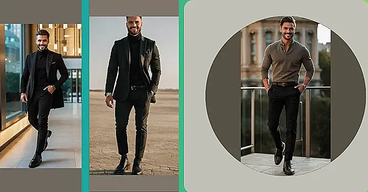 Hey guys, looking for the perfect outfit to slay at that Christmas party? Forget the ugly Christmas sweater – this all-black suit is where it’s at! This dude in the pic is rocking a seriously smooth look. It’s like James Bond went Christmas shopping, and instead of gadgets, he grabbed a killer turtleneck, a sharp suit, and some seriously shiny shoes. He’s ready to jingle all the way to the dance floor and maybe even snag that mistletoe moment.