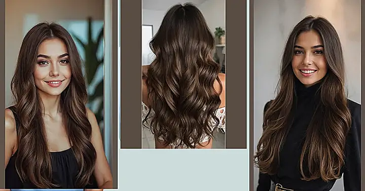 This picture shows off exactly why brunette hair is having a major moment. Just look at those glossy waves and that gorgeous deep color! It’s the kind of hair that looks amazing whether you’re acing a pop quiz or just chilling with friends. It screams confidence, like it knows all the best secrets and smells faintly of sunshine and maybe a little bit of mischief. Getting your hair to look this perfect probably requires a team of tiny squirrels doing precision brushing, but we can dream, right?