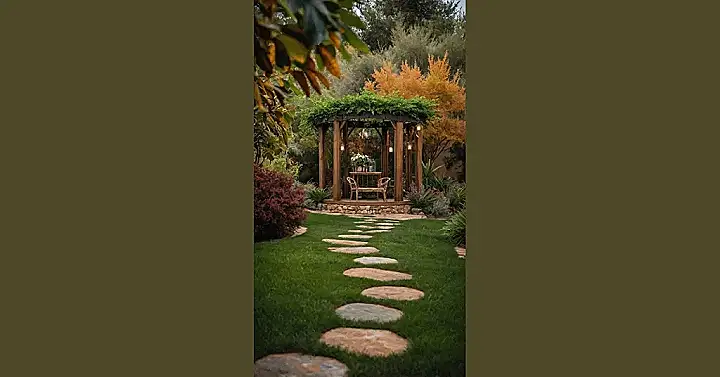 Follow that cool stepping stone path and you end up at what looks like the ultimate chill-out hub. This little structure, draped in greenery with hanging lights, is way cooler than just sitting on the porch steps. It shows how adding furniture, lighting, and maybe even a spot for snacks (definitely snacks) makes your yard functional AND fabulous. Good outdoor decor basically turns your yard into another room, but with way better air and probably fewer chores.
