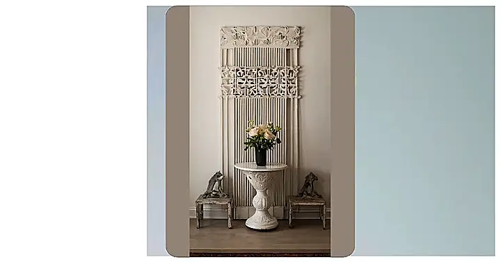 This isn’t your grandma’s wall decor! Seriously, check out this amazing, ornate screen – it’s like something straight out of a fairytale castle (but way cooler). It’s all swirls and fancy shapes, and paired with that cute little table and vase of flowers, it’s almost too pretty to be real. I bet it would look awesome in a bedroom or even a super stylish bathroom. The whole setup just screams “sophisticated chic,” even if “sophisticated chic” sounds like something your aunt would say.