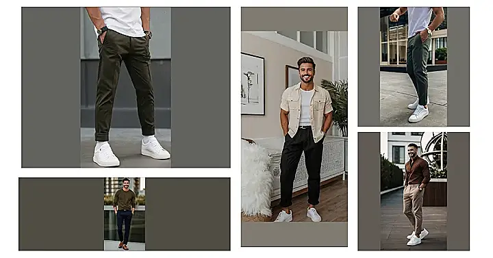 Color is king, my friends! You’ve got your trusty navy blue, classic gray, and trendy khaki—all prime candidates for a wardrobe revamp! Imagine rocking a fresh white shirt black combo, paired with some sleek brown trousers. Now that’s a recipe for turning heads! And let’s not forget about that ultra-cool beige jogger look, which can easily transition from lounging at home to hitting the town with your friends.