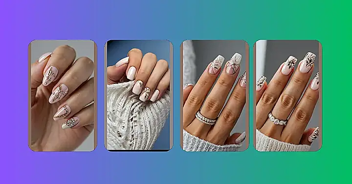 If you’re tired of the same old boring nail polish, check out these designs! These are like the VIP pass to fancy-town for your fingertips. Seriously, who knew you could turn your nails into tiny works of art? They’re rocking lace patterns and shiny butterfly accents like it’s nobody’s business. Talk about nailing the nail game!
