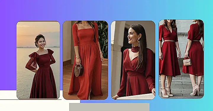 That maroon maxi dress is totally giving us old-Hollywood glam vibes, but with a modern twist! Imagine strolling through a farmer’s market (with that adorable straw bag, of course!), or rocking it at a fancy dinner. It’s so versatile, you could practically wear it to a royal ball (if you happened to have one of those in your schedule!). The puffed sleeves and the little ruffle at the bottom are the perfect blend of elegant and playful—a style upgrade from those jeans and hoodies we all love, but way more sophisticated.