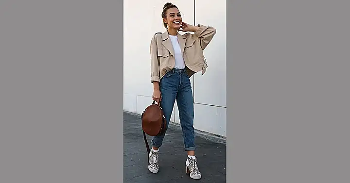 Weather-wise, style doesn’t ever need to take a hit! You can layer a light denim jacket over a cute beige top when it starts to get chilly. With the right shoes, even your light blue mom jeans can carry you through any season while keeping you fashionably comfortable!