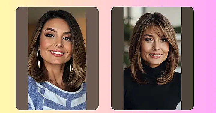 Medium layered hair offers perfect versatility to suit your unique face shape. Whether you love or loathe the idea of a medium round face, hairstyles like soft layers or chin-grazing cuts will flatter all features beautifully. Pair that with bangs for a youthful and vibrant look—who says you can’t look fierce while navigating grocery stores or dropping kids off at school?
