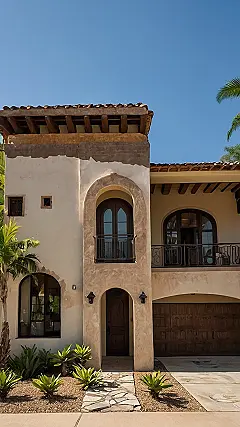 Imagine waking up in a house that looks like it stepped straight out of a movie! This hacienda-style home is all about those gorgeous arched doorways and windows, letting in tons of sunshine—perfect for those lazy mornings spent sipping your juice. The terracotta tiles on the floor are super stylish and make the whole place feel warm and inviting, kinda like a big, comfy hug from your house! It’s like stepping into a luxurious vacation every single day.