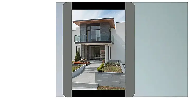 This house is like a fancy architectural sandwich, isn’t it? You’ve got the bottom floor all business with its garage, then the top floor is like, “Hey, let’s chill on this sweet balcony!” It’s a two-story design that screams, “I’m modern, I’m stylish, and I definitely have a robot vacuum for all this hard flooring!” Imagine throwing parties here; downstairs for the chips and dip, upstairs for the deep chats and staring at the stars (or maybe just scrolling through TikTok).