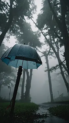 This picture is like a rainy day selfie for an umbrella! Imagine this poor umbrella, all alone in the misty woods, getting absolutely soaked. It’s probably thinking, “Where’s my owner? I’m starting to feel like a soggy noodle!” It’s the perfect rain day wallpaper for anyone who secretly loves the cozy feeling of a downpour – even if it means your umbrella gets a little lonely.