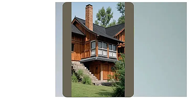 This house is all about the wood! Just look at it – it’s like a giant gingerbread house straight out of a fairy tale. From the roof to the walls, everything is made of strong, beautiful wood. It’s almost like this house was built to last forever! Those thick wooden logs make you think of a cozy cabin in the woods, perfect for snuggling up by the fireplace on a chilly evening.