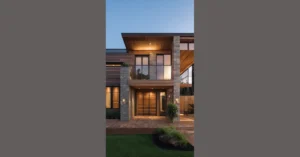 The cool thing is that the house isn’t all wood, there’s also some stone. It kind of reminds me of a treehouse but for grown-ups! The stone chimney is like a big, strong hug around the house, making sure it stays warm and safe. It’s like a mix of rustic and modern – like a log cabin that got a makeover!