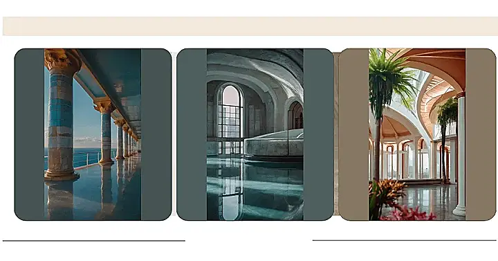 Imagine a giant, abandoned building with arched windows that look like they’re leading to a secret world. Inside, there’s a sparkling pool, untouched by time and perfect for a dip. But look closer – the water reflects the crumbling arches and chipped tiles, hinting at a past filled with whispers and forgotten stories. This is “dreamscape architecture” in action – a place where imagination can run wild, and the past and present meet in a stunningly strange way.