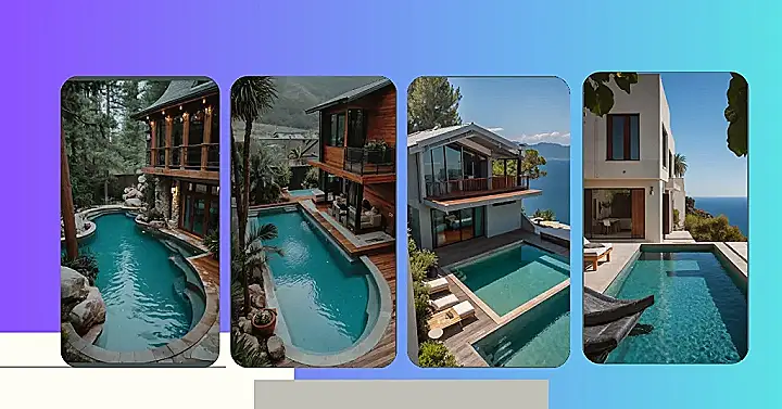 But the best part? The pool! It’s so clear and blue, it looks like it could be a real swimming hole. You can even see the reflection of the house in the water, which makes the whole thing look even more magical. It’s the perfect place to hang out on a hot day, or even just to relax and enjoy the peace and quiet. I bet the owner throws some epic pool parties!