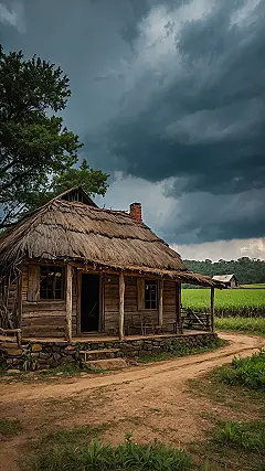 Wow, talk about dramatic rural photography! This picture totally nails the vibe with that old, weathered house looking like it’s straight out of a storybook, complete with a cozy-looking thatched roof that hopefully doesn’t leak when those moody dark clouds finally decide to let loose. You can almost feel the humidity in the air just looking at it. Capturing scenes like this is all about being in the right place at the right time, maybe dodging a few raindrops or finding shelter on that porch while you wait for the perfect light (or dramatic storm effect). Just picture trying to explain why you’re standing in a field during a thunderstorm with a camera – “It’s for the art!”