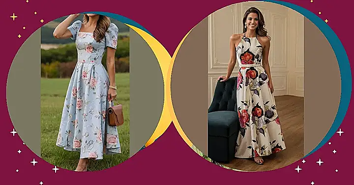This woman is totally rocking a classy frock! It’s like she stepped out of a magazine, ready to attend a fancy party or a special occasion. The floral pattern is super pretty, and the flowy fabric makes the dress look super comfy and stylish. It’s the kind of outfit that makes you feel confident and ready to take on the world.
