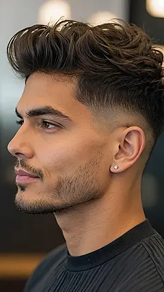 Okay, so check out this dude’s hair. That’s not just any haircut, that’s a *fade*. It’s like your hair is trying to subtly disappear, but in a super stylish way. You’ve got the short sides that fade smoothly into the skin, and then BAM, all that volume on top! If your hair could have a personality, this one would be the cool, chill guy who’s secretly the smartest in the room.